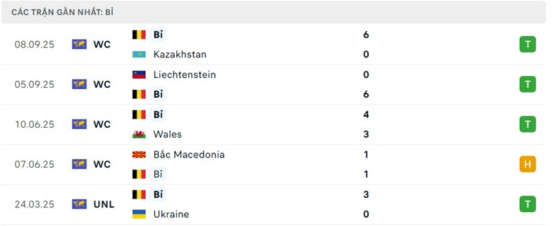 Nhìn vào phong độ gần đây, Bỉ đang cho thấy sự trở lại đầy mạnh mẽ sau giai đoạn khởi đầu chưa thực sự bùng nổ. Ở lượt trận gần nhất, Bỉ đã có chiến thắng ấn tượng khi đánh bại Kazakhstan tới 6-0. Đây đã là trận thứ hai liên tiếp tại vòng loại World Cup mà Bỉ ghi tới sáu bàn thắng, một minh chứng rõ ràng cho sự áp đảo về mặt tấn công.