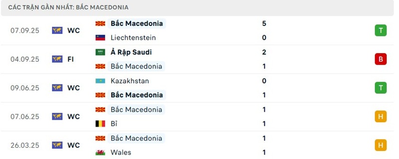 Họ từng góp mặt ở VCK Euro 2020 và suýt giành vé đến World Cup 2022, chỉ dừng bước ở trận play-off cuối cùng. Bước vào chiến dịch vòng loại 2026, đoàn quân của HLV Blagoja Milevski tiếp tục duy trì sự ổn định với thành tích bất bại sau 4 trận: thắng Liechtenstein và Kazakhstan, hòa Wales và đặc biệt là hòa 1-1 với Bỉ ở trận lượt đi. Phong độ sân khách của Bắc Macedonia cũng không thể xem thường. Họ chơi với tinh thần kỷ luật, phòng ngự số đông và sẵn sàng phản công chớp nhoáng nhờ vào tốc độ và sự cơ động của những cầu thủ như Eljif Elmas hay Darko Churlinov.