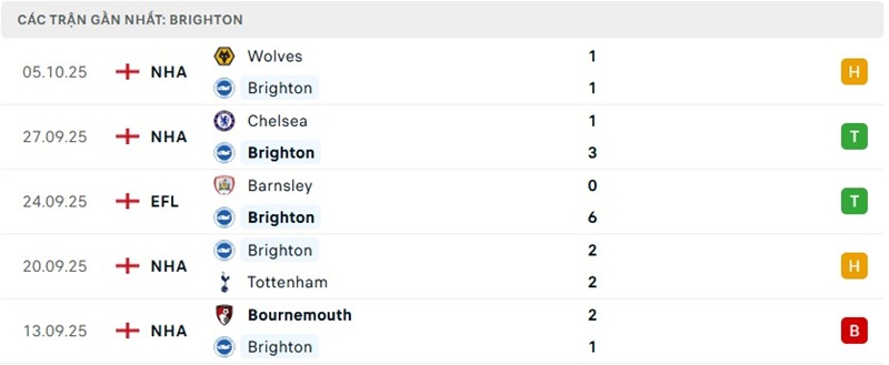 Phong độ chủ nhà Brighton