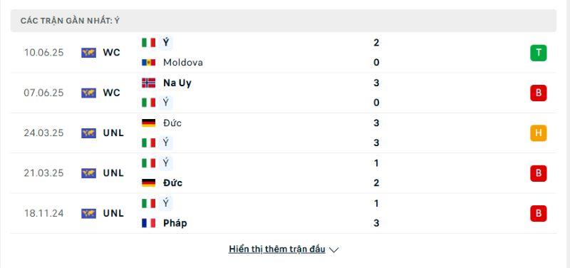 Trên BXH vòng loại World Cup 2026, Italia đang dẫn đầu nhóm I với hiệu số vượt trội. Lối chơi tấn công tốc độ, kết hợp với hàng tiền vệ cơ động và hàng thủ chắc chắn, giúp Italia trở thành ứng cử viên nặng ký cho tấm vé dự World Cup. Trận đấu với Israel sẽ là cơ hội để Azzurri tiếp tục khẳng định vị thế và củng cố ngôi đầu bảng.