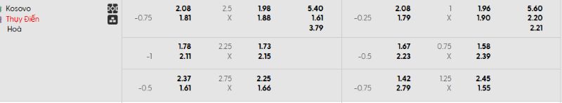 Soi kèo Kosovo vs Thụy Điển qua tỷ lệ