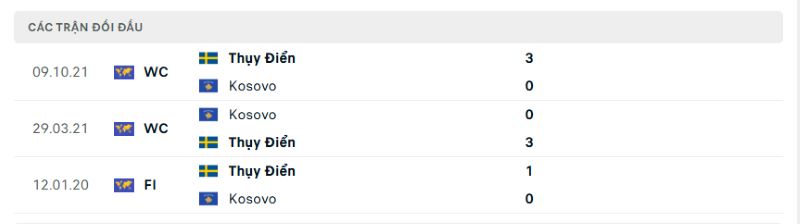 Trận đấu gần nhất giữa hai đội tại vòng loại World Cup 2022 chứng kiến Thụy Điển dễ dàng vượt qua Kosovo với tỷ số 3-0 trên sân nhà. Những ngôi sao như Emil Forsberg và Robin Quaison đã tỏa sáng rực rỡ.