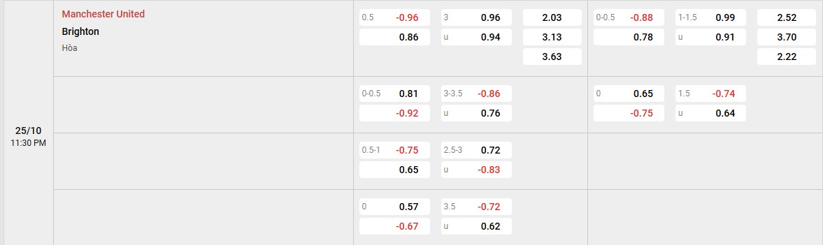 Soi kèo Manchester United vs Brighton qua tỷ lệ