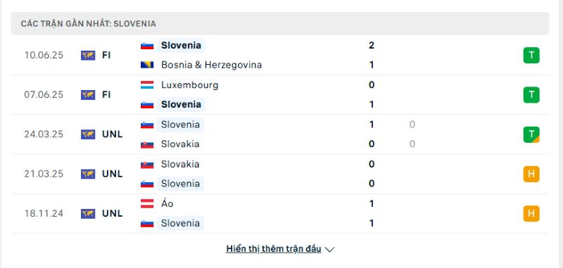 Phong độ của Thụy Sĩ vs Slovenia gần đây