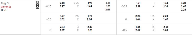 Soi kèo Thụy Sĩ vs Slovenia qua tỷ lệ